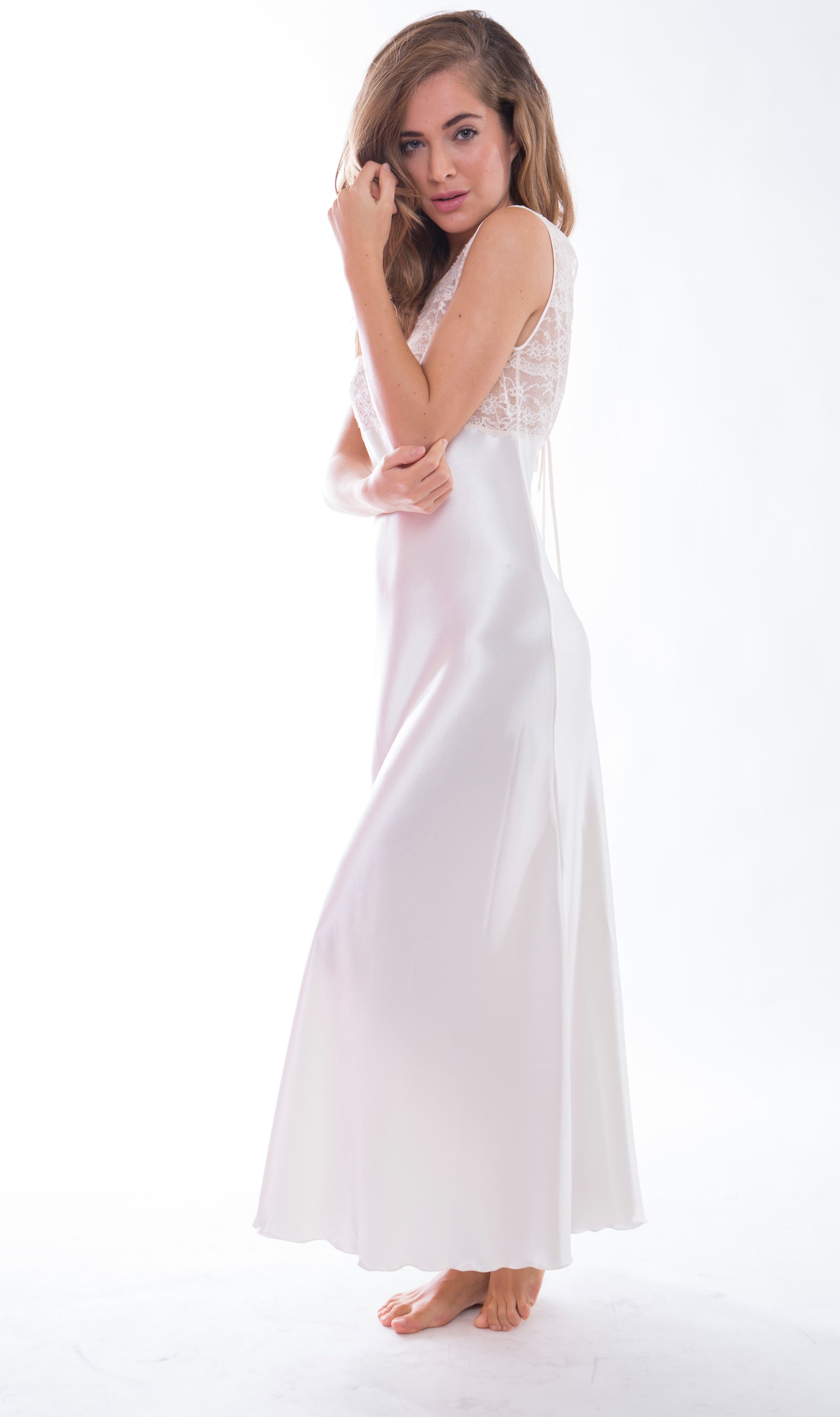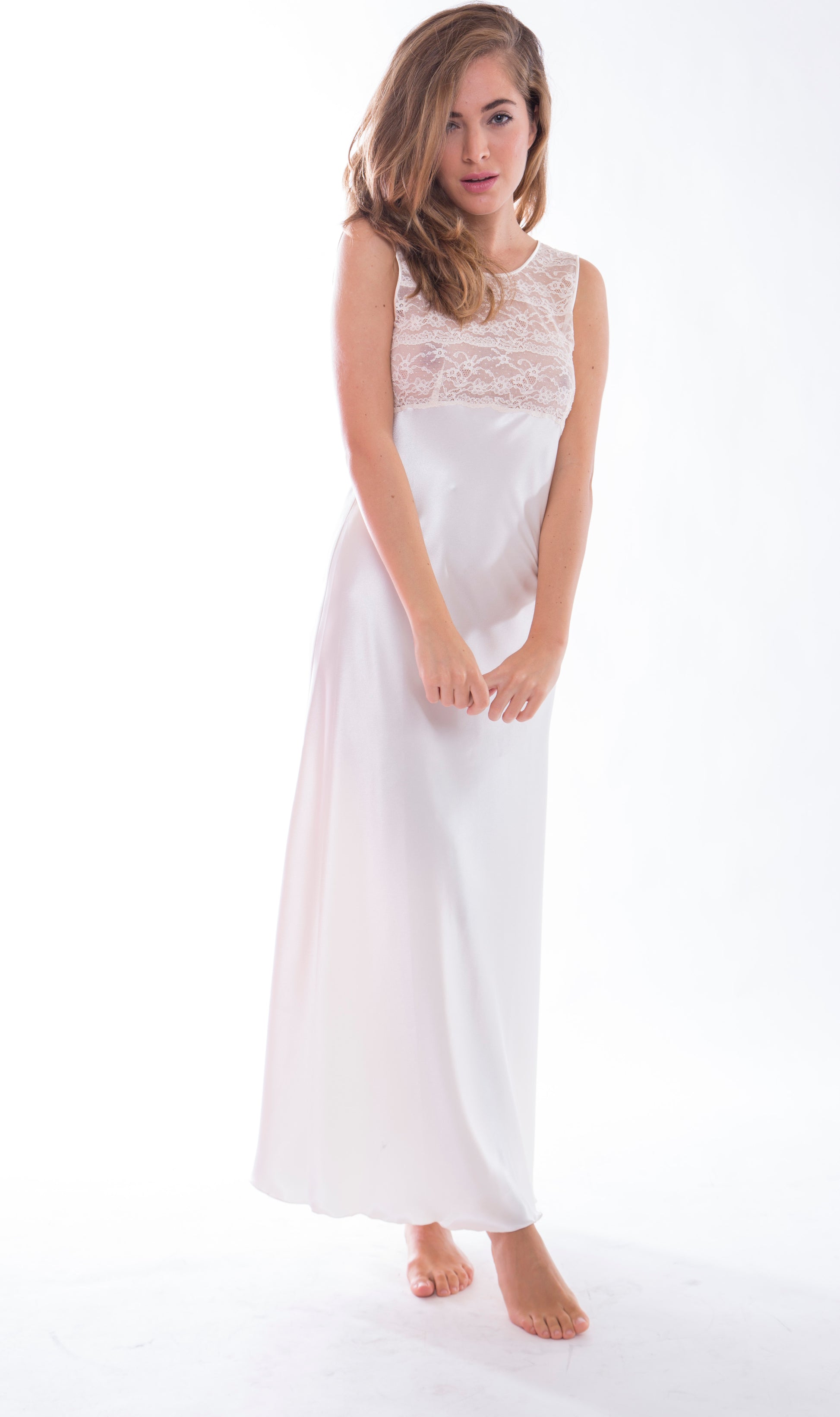 Camisón largo con cuerpo de encaje y abierto en espalda